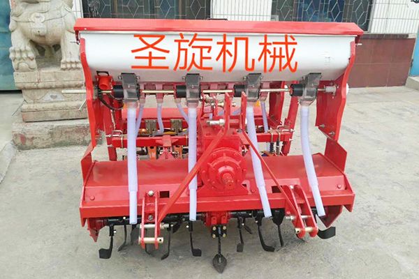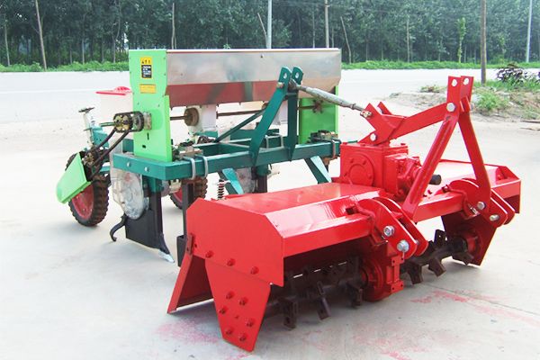 2BF系列旋耕播種機(jī)連接旋耕機(jī)和播種機(jī)在三點。旋耕機(jī)后可加小麥、玉米、花生、蔬菜等播種機(jī),同時可完成栽培、施肥、播種、軋制??梢淮瓮瓿尚⑹┓?、覆膜、起壟等功能,是一臺多功能一體機(jī)??筛鶕?jù)用戶要求定做不同型號。